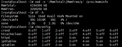 # sed -n ‘/MemTotal|MemFree/p’ /proc/meminfo <–查看内存信息